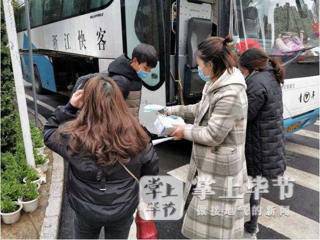 陈仁凤为即将返岗的务工人员发放口罩