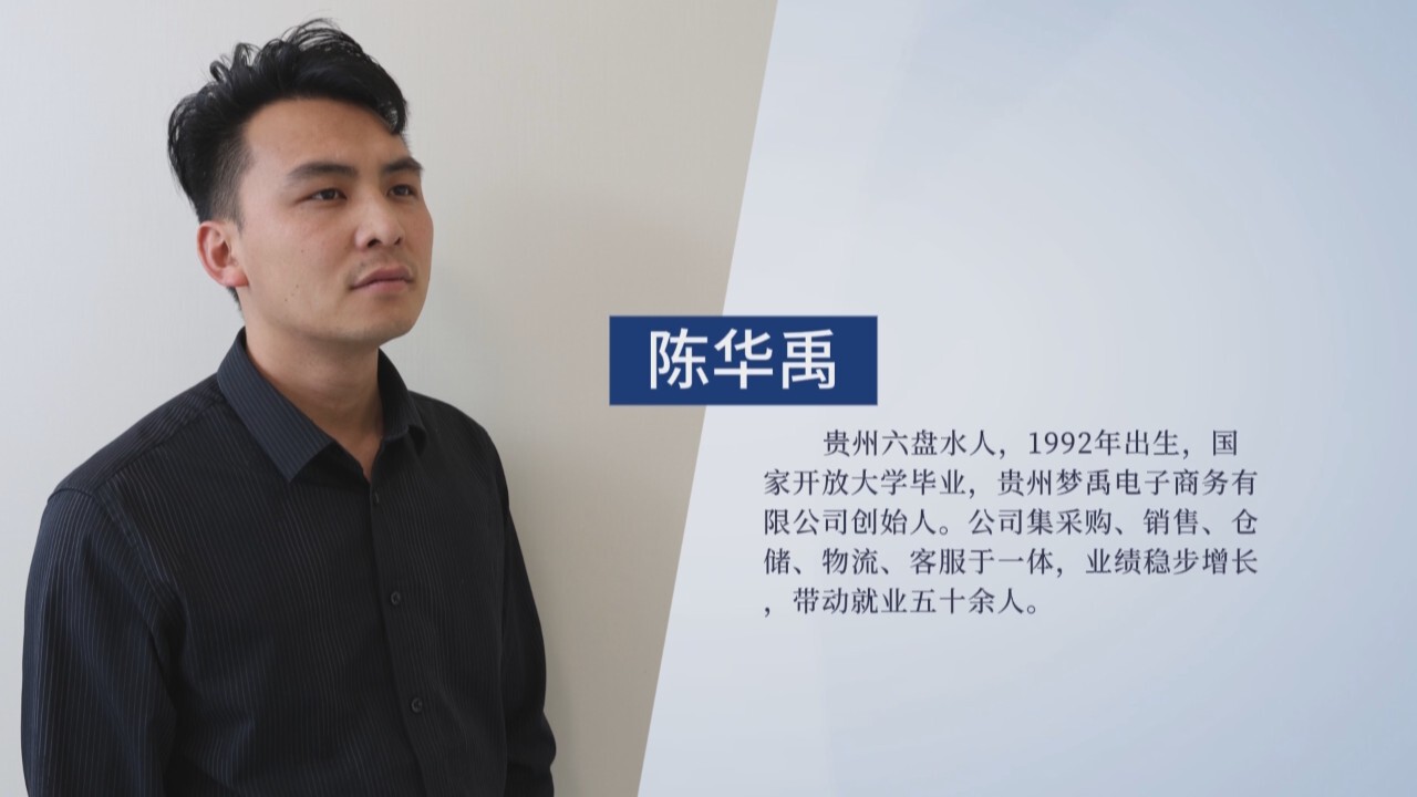 陈华禹,贵州六盘水人,1992年11月出生,国家开放大学毕业,贵州梦禹电子商务有限公司创始人。公司集采购、销售、仓储、物流、客服于一体,业绩稳步增长,带动就业五十余人。