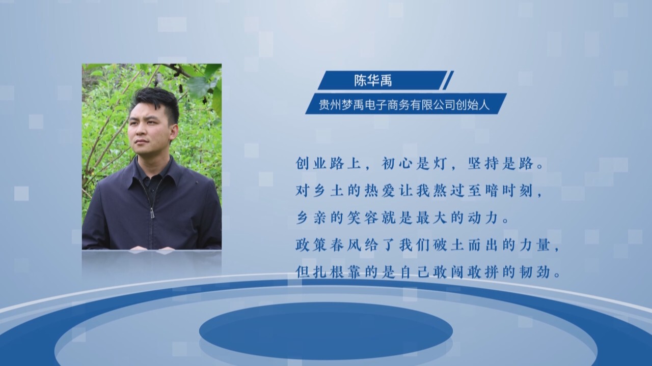 贵州梦禹电子商务有限公司创始人 陈华禹 回头看这条路,真的很难。资金的压力、招人的焦虑、市场的竞争,无数次想过放弃。但每当看到乡亲们因为产品卖出去了露出的笑容,想到自己当年“改变家乡面貌”的那颗初心,我就告诉自己:不能停!这份对家乡土地的热爱,对梦想的执着,是支撑我走到今天最大的力量。