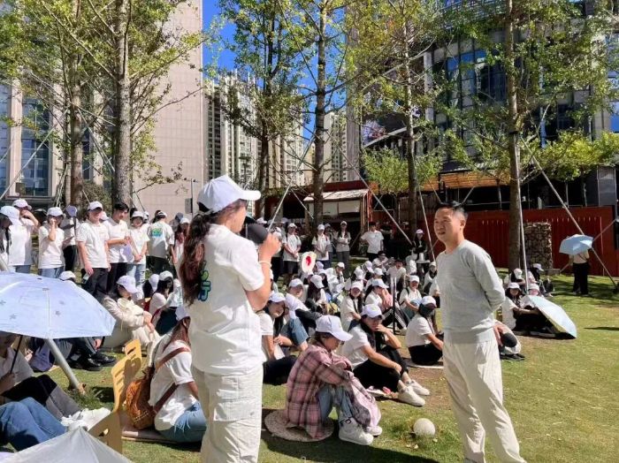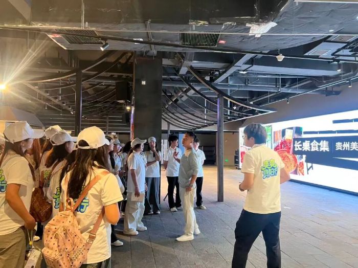 随后,学子们分组走进村口市集、长桌食集、文创零售区,在各板块负责人的讲解下,深入了解品牌招商、场景打造、客群维护等实操环节;不少同学还结合自身市场营销、工商管理等专业,围绕实习岗位的入职时间、培养体系,以及急需岗位的晋升空间等问题,与董洁及人力资源团队展开一对一交流。“原来商业岗位不只是卖货,还能把贵阳文化做成潮流产品,董老师的解答让我明确了努力方向,现在就能申请实习,太及时了!”来自贵州财经大学市场营销专业的同学表示,这次参访既打破了对传统商业的刻板印象,也找到了贴合自身的职业切入点。