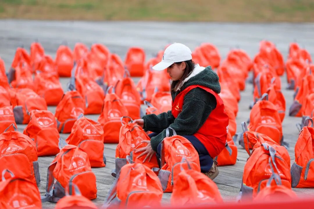 志愿者在都匀东站广场为返岗务工人员准备爱心礼包。