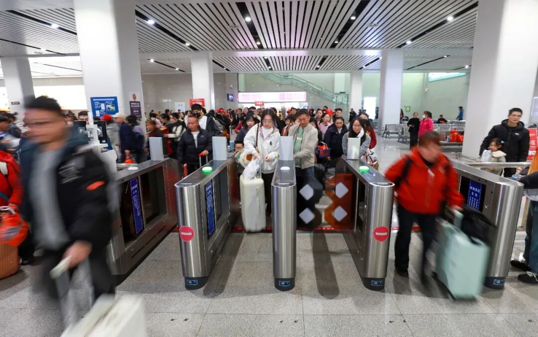 返岗务工人员在都匀东站排队检票进站