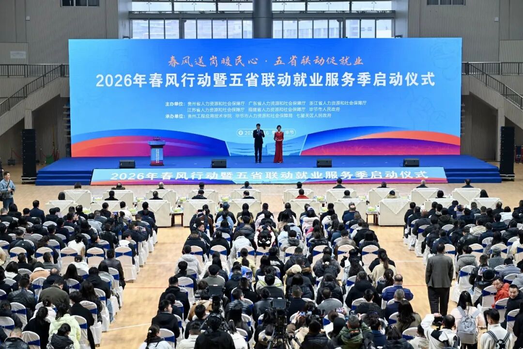 1月16日,主题为“春风送岗暖民心、五省联动促就业”的贵州省2026年“春风行动”暨五省联动就业服务季全面启动。启动仪式在毕节市举行,现场举办五省联动大型招聘会,各市州同步开展各类线上线下招聘活动。