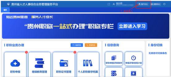 个人账号注册成功后需绑定单位,保证申报的职称信息能够被单位接收并审核。操作步骤为:完成系统登录—>在系统首页的右上方,点击用户中心,选择个人资料—>在个人资料页,直接输入“现工作单位名称”提交申请,个人承诺(提交)。以上操作完成后,发起个人到单位的绑定申请,由单位管理员或单位经办员确认接收通过后,即可成功绑定到单位,操作截图指引参考如下: